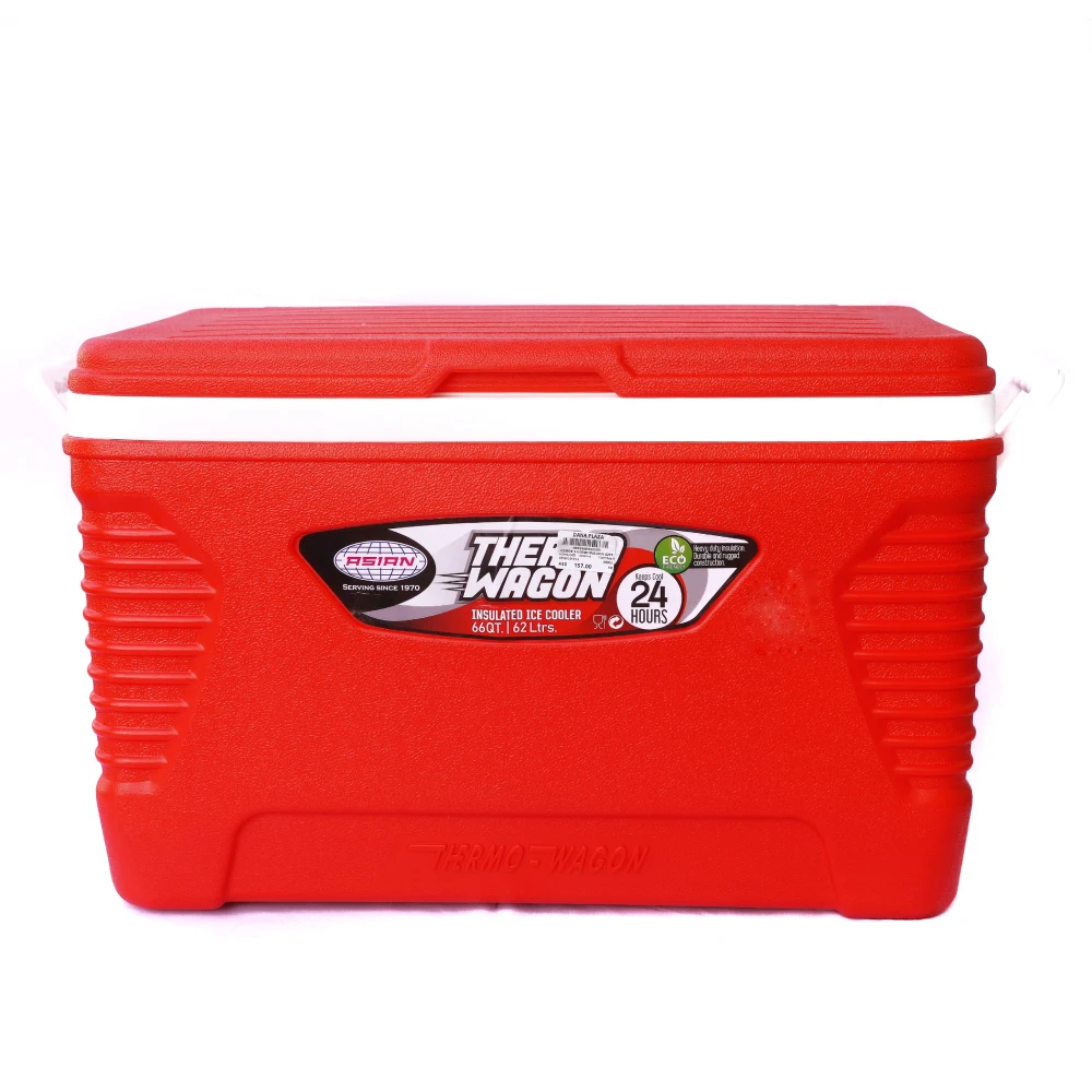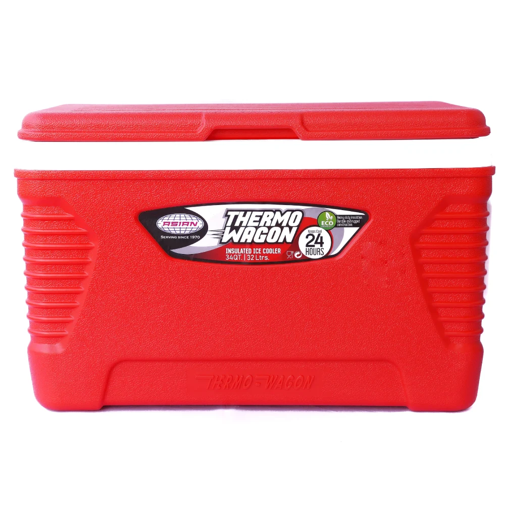 ASIAN THERMO WAGON INSULATED ICE COOLER 34 QT | 32 L 34 QT / 32L Capacity: Offers ample space to store drinks, snacks, or perishable items for a group. 24-Hour Cooling: The insulated design keeps ice and beverages cool for up to 24 hours, making it ideal for long trips or day-long events. Durable Insulation: Made with high-quality, thick insulation to maintain low temperatures and prevent heat transfer. Wagon Design: Features sturdy wheels and a handle, allowing for easy transport, even when the cooler is full. Leak-Proof Lid: Helps prevent spills and keeps the cooler airtight for better cooling efficiency. Versatile Use: Perfect for camping, beach trips, barbecues, and other outdoor activities. Uses: Outdoor Adventures: Ideal for camping, hiking, fishing, or beach trips where you need reliable cooling. Parties & Gatherings: Keep drinks cold at picnics, barbecues, or tailgates. Sports Events: Great for keeping beverages cool during outdoor sports events.