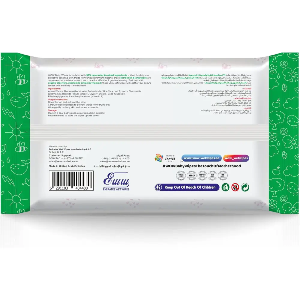 WOW BABY WIPES ORGANIC EXTRA THICK LONG WIPES, 80 WIPES Extra Thick & Long Wipes: Made with 98% water, infused with aloe and chamomile extract for extra softness. Natural Ingredients: Crafted with Ecocert certified ingredients for peace of mind.