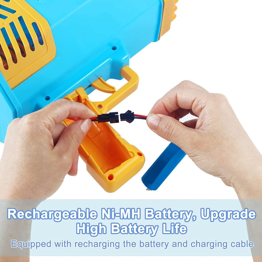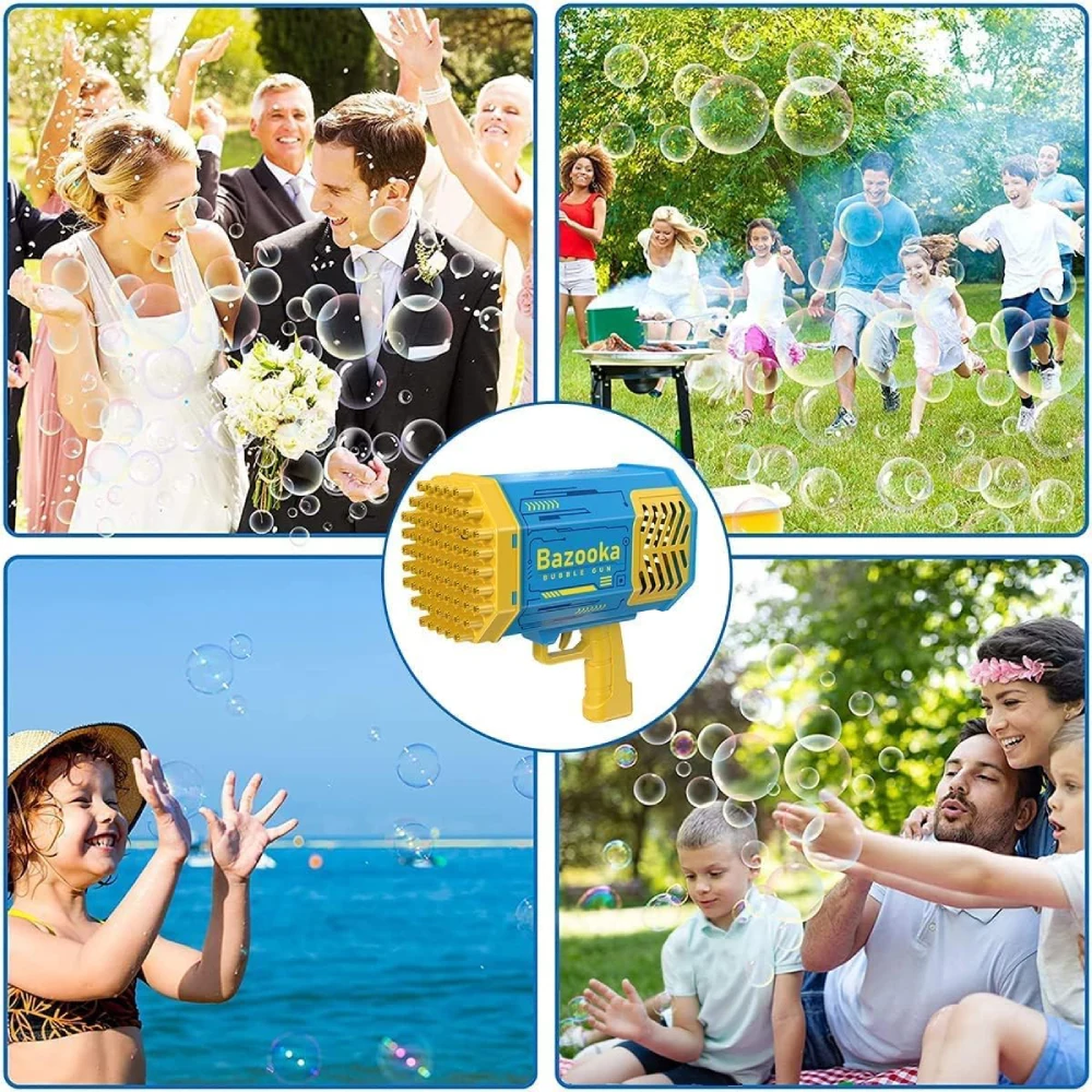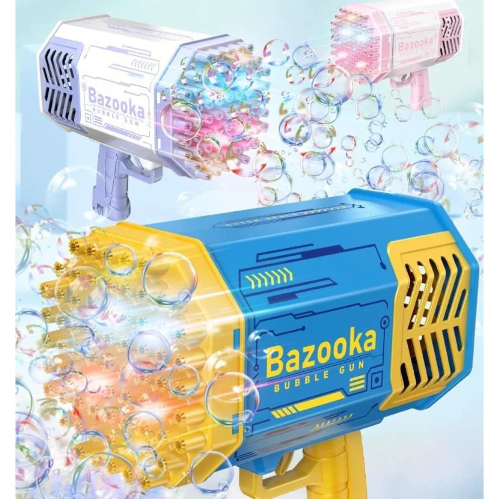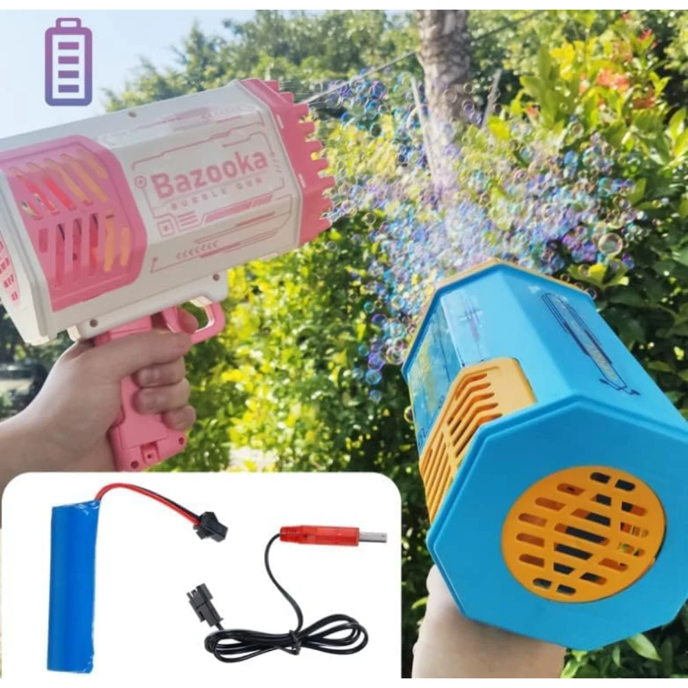 BAZOOKA 69 HOLE SPACE BUBBLE GUN - BLUE 69-Hole Bubble Machine – A fun toy that creates lots of bubbles, perfect for kids and family playtime! Fun and Engaging: Helps kids enjoy bubble play, improving hand-eye coordination and providing interactive fun. It also doubles as a small fan when the baby is tired. Popular Bubble Toy: Loved by internet personalities and perfect for parties, events, photoshoots, birthdays, weddings, and more. High-Quality Material: Made from durable plastic. Perfect Size: 9.8 x 5.5 x 9.8 inches. Package Includes: 1 bubble maker, 2 bottles of bubble solution, 1 battery, and 1 USB cable. A great toy for family fun and perfect for creating memorable moments with bubbles!