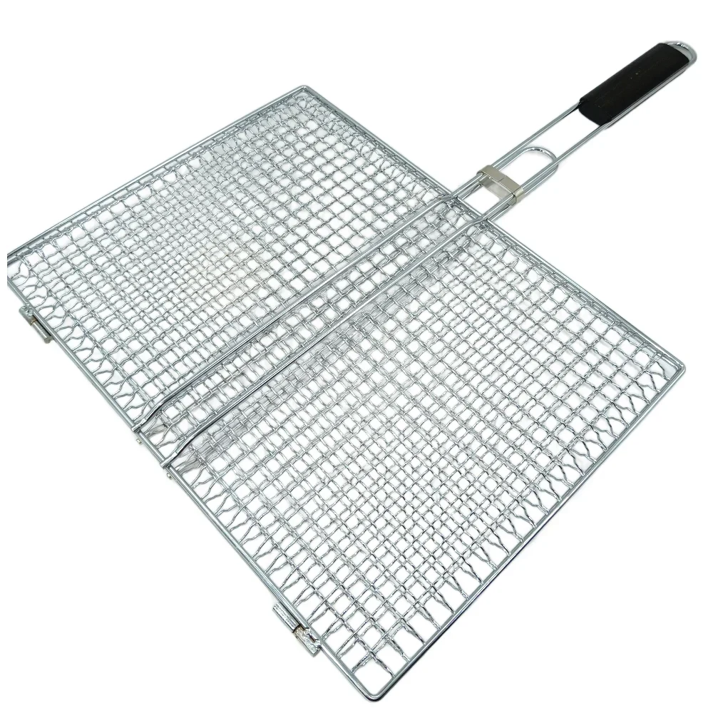 OMEGA 1 KOREAN QUALITY BARBEQUE GRILL NET 30 CM X 30 CM Key Features: Size: 30 cm x 30 cm, perfect for grilling smaller portions. Material: Made from thick metal, ensuring durability and heat resistance. Tiny Gap Mesh: Features tiny gaps to prevent small foods (like fish or vegetables) from falling through while ensuring even grilling. Long Wooden Handle: Equipped with a long wooden handle for safe and comfortable grilling. How to Clean: Let the grill cool down after use. Rinse with warm water to remove any loose food particles. Use a soft brush or sponge with mild dish soap to scrub the mesh. For tough grease, soak the grill in soapy water for a few minutes. Dry the grill completely before storing it to prevent rust. This grill net is perfect for Korean BBQ and grilling small items without worrying about them falling through.