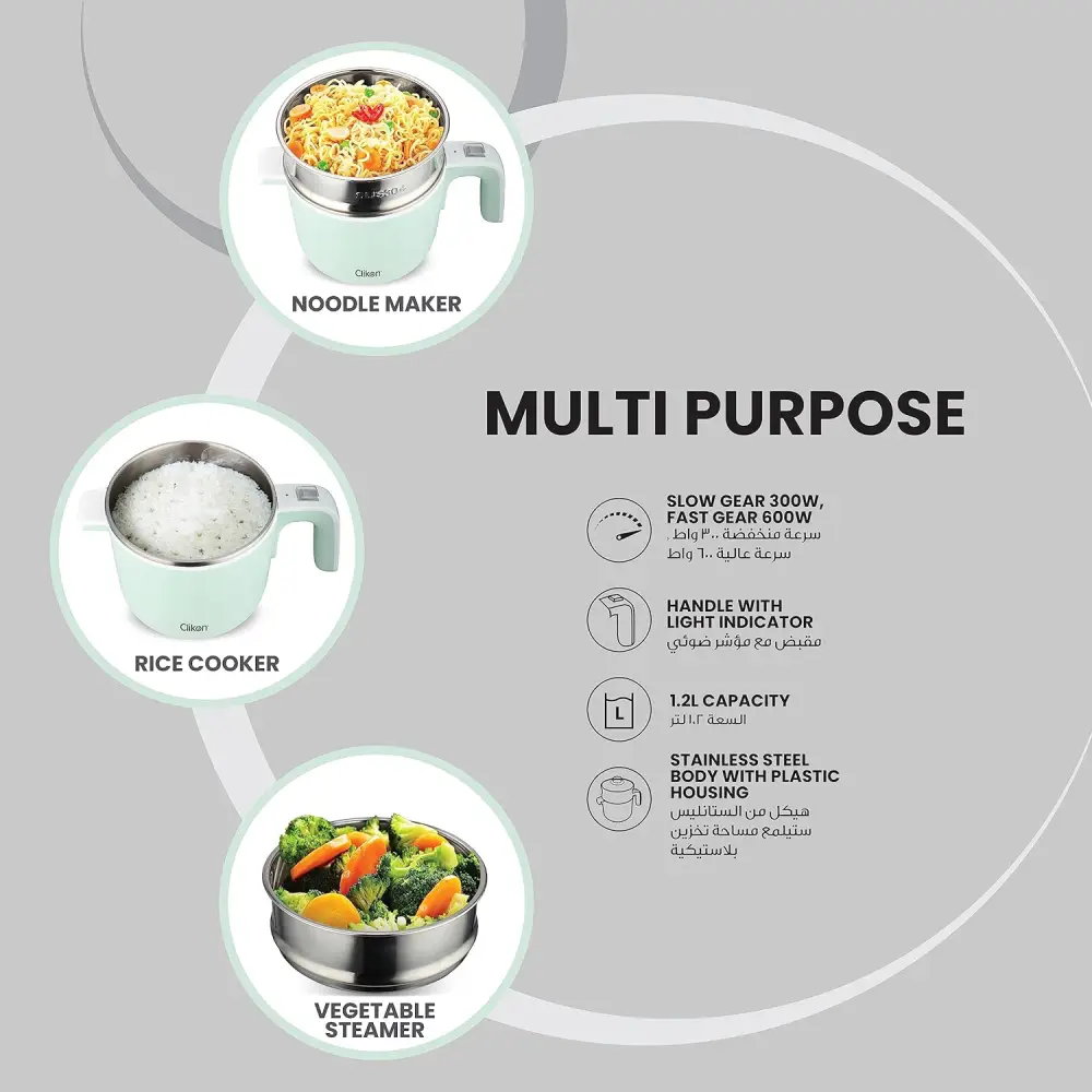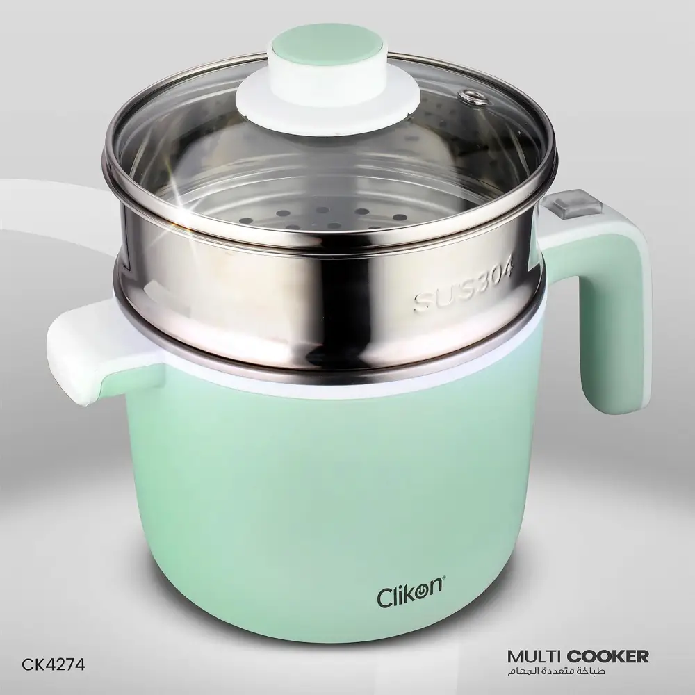 CLIKON 1.2 L ELECTRIC MULTI COOKER 720 W CK4274 The Clikon 1.2 L Electric Multi Cooker (Model: CK4274) has the following features: 1.2-Liter Capacity: Ideal for small to medium-sized meals. 720W Power: Provides efficient cooking. Multi-Function: Suitable for various cooking tasks like boiling, frying, and steaming. Compact Design: Space-saving and easy to store. Durable: Built for long-lasting use. This multi cooker is a convenient and versatile kitchen appliance.