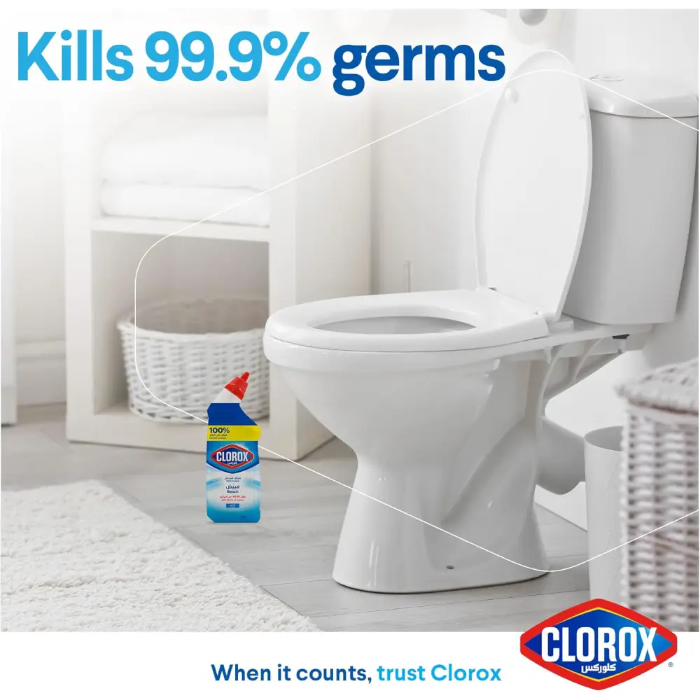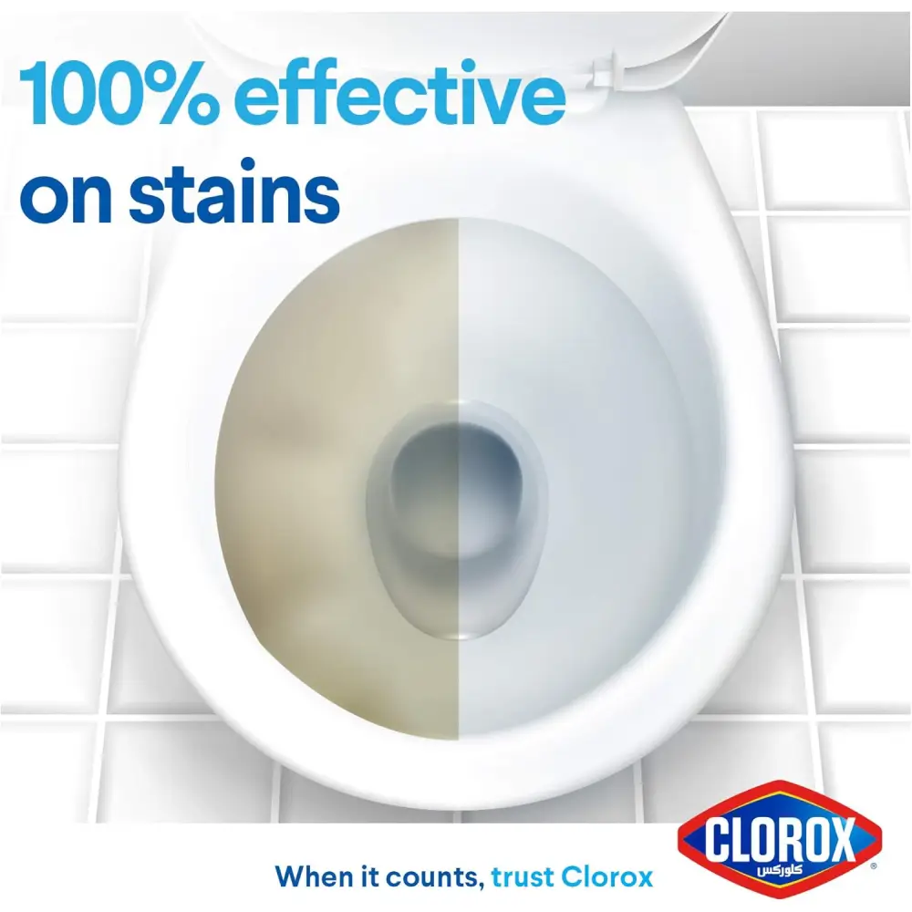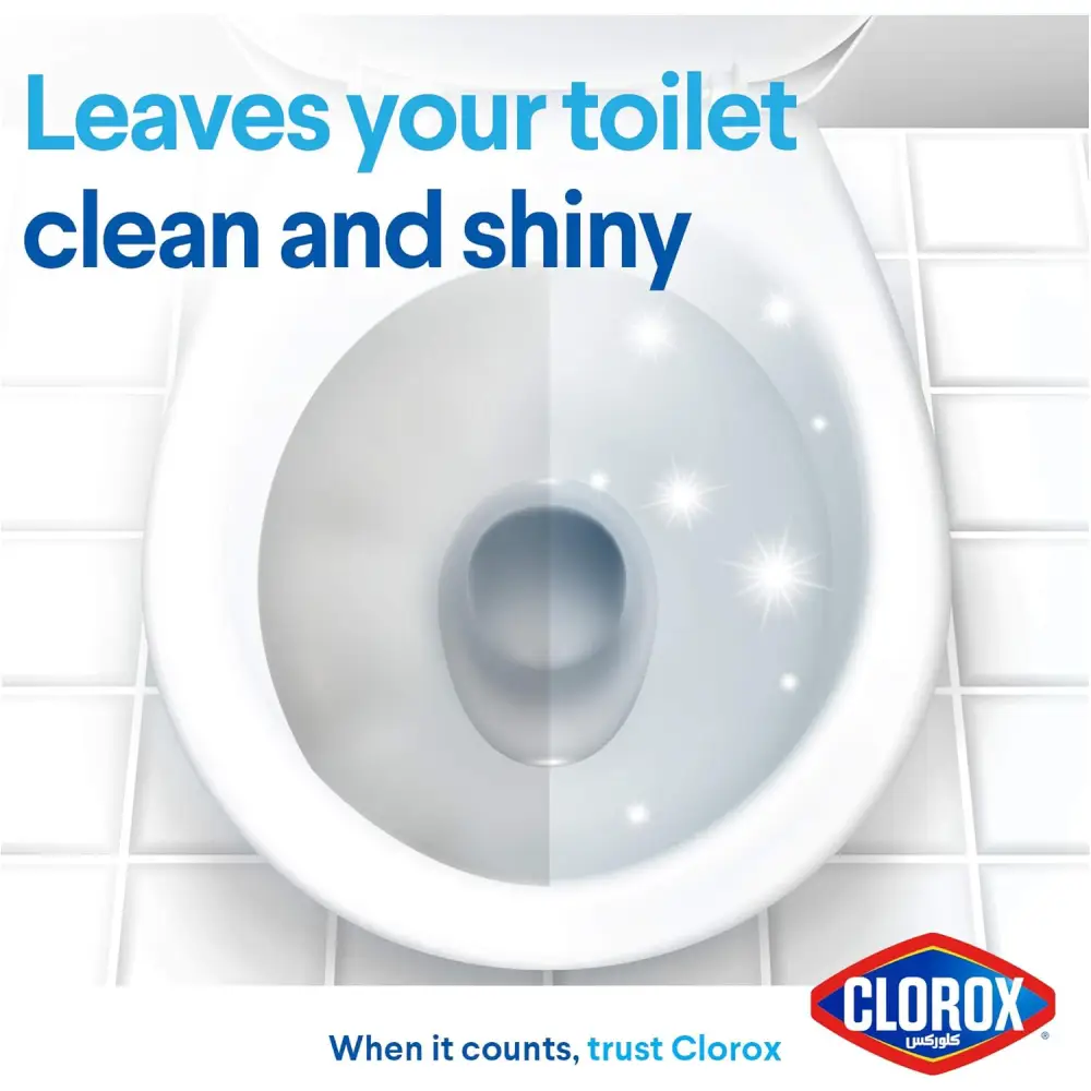 CLOROX 99.9 % OF GERMS TOILET CLEANER WITH BLEACH 709 ML Cleans, Disinfects, and Deodorizes: This toilet cleaner kills 99.9% of germs, eliminates odors, and leaves your toilet sparkling clean. Stain Removal Power: Effectively tackles tough stains and grime, restoring the shine to your porcelain toilet bowl. Thick Gel Formula: The formula clings to the bowl's surface for a deep clean. Simply apply, scrub, let it sit, and flush to remove grime. Targeted Application: The angled bottle and wide dispensing nozzle make it easy to clean hard-to-reach areas like under the rim and behind the seat. Bleach-Powered: Formulated with bleach, this cleaner is non-abrasive and safe for septic systems, offering a powerful clean without scratching surfaces. Perfect for removing dirt, germs, and stains for a trusted, deep clean.