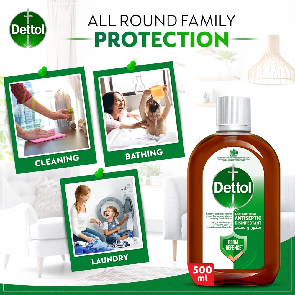DETTOL ANTIBACTERIAL ANTISEPTIC DISINFECTANT 500 ML Dettol Antibacterial Antiseptic Disinfectant is a versatile product used for cleaning and disinfecting surfaces, as well as for personal care. It’s effective against bacteria and viruses, making it popular for maintaining hygiene in homes and healthcare settings. Key Features: Antibacterial Properties: Kills a wide range of bacteria. Multipurpose Use: Suitable for cleaning wounds, disinfecting surfaces, and even laundry. Concentrated Formula: Can be diluted for various uses. Usage: For Cleaning: Dilute with water and apply to surfaces. For Wound Care: Can be used to clean minor cuts and abrasions (always follow guidelines). For Laundry: Add to wash to disinfect clothing. Safety Tips: Always read the label for proper dilution and usage instructions. Keep out of reach of children. Avoid contact with eyes and broken skin.