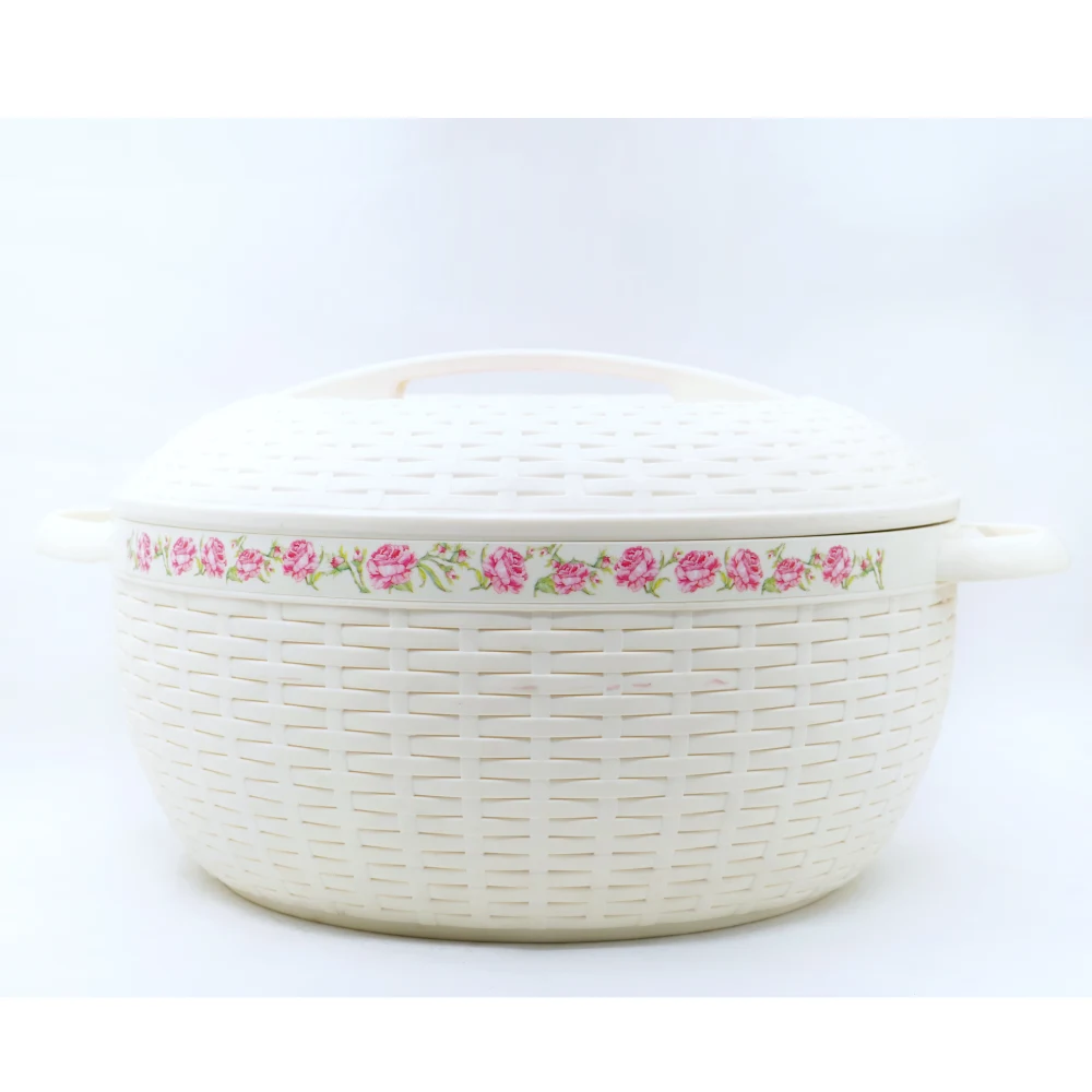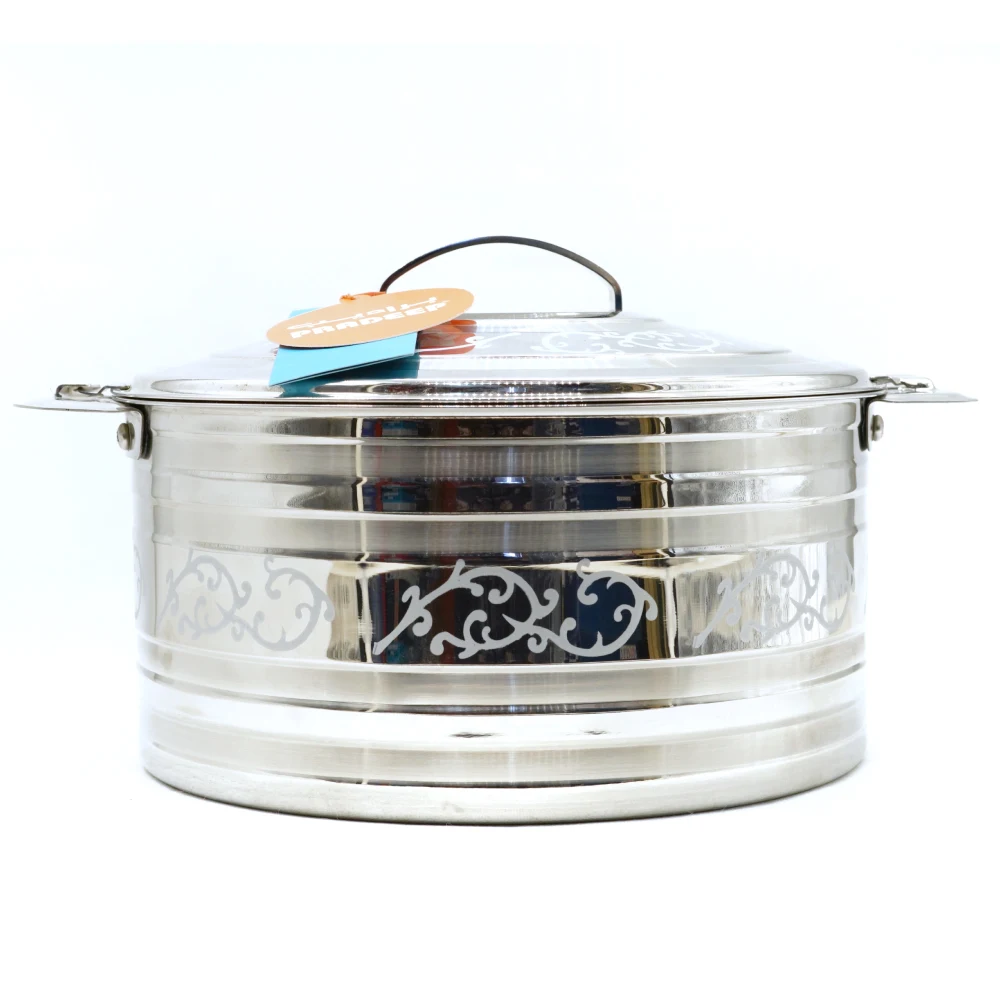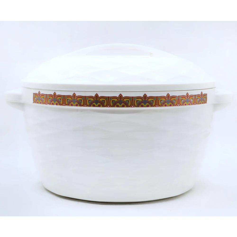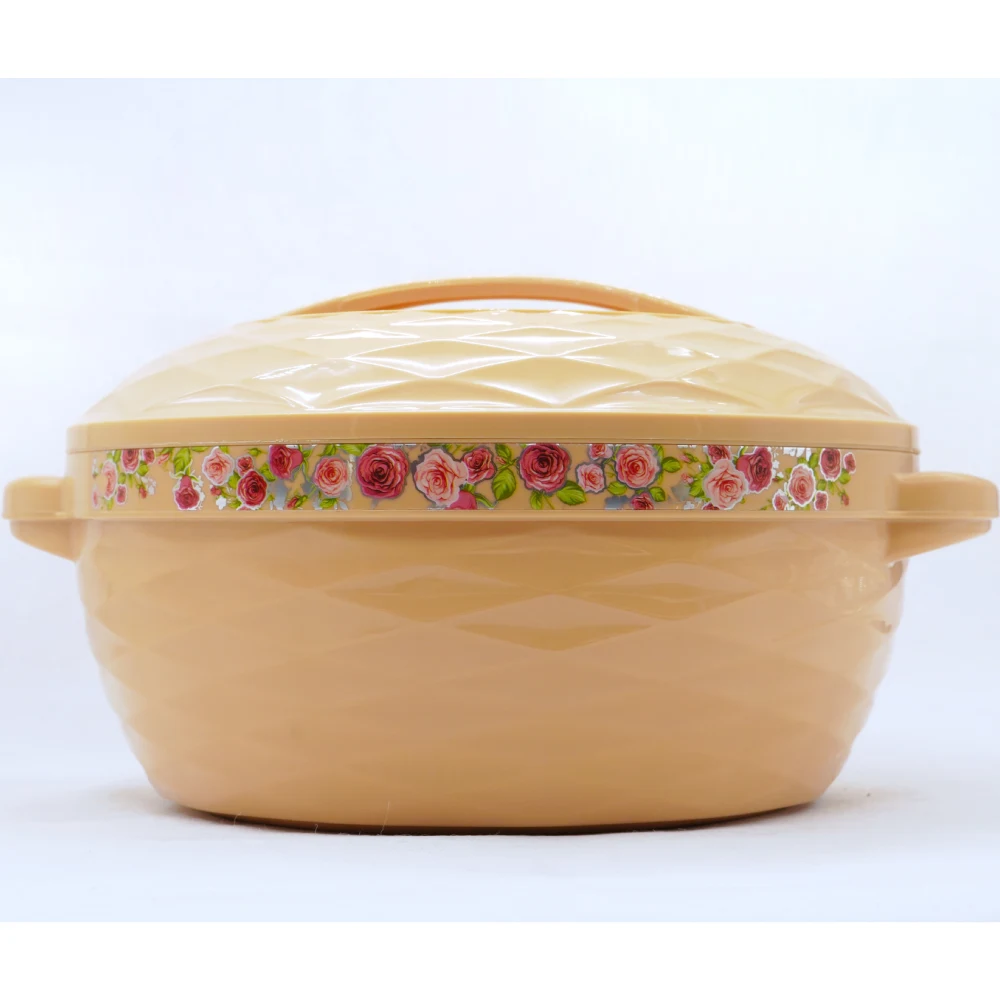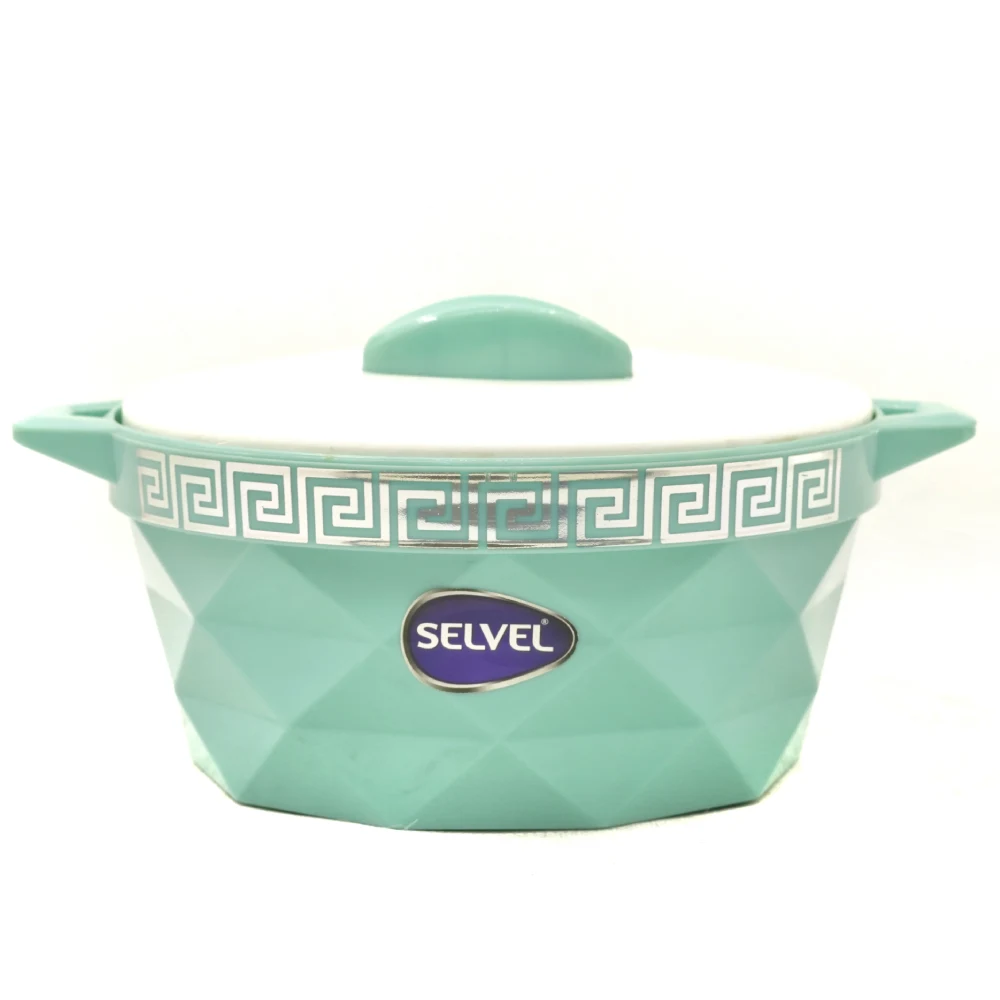 DIAMOND SELVEL INSULATED HOTPOT The Diamond Selvel Insulated Hotpot is designed to keep your food hot for extended periods, making it ideal for serving at gatherings or during travel. Here are some common features: Insulation: Double-wall construction helps maintain the temperature of your food, keeping it hot or cold for hours. Material: Typically made from high-quality plastic or stainless steel, which is durable and easy to clean. Capacity: Available in various sizes to accommodate different meal portions, perfect for curries, stews, or rice dishes. Lid: Usually comes with a secure, tight-fitting lid to prevent spills and maintain heat. Design: Often features an attractive design, making it suitable for serving directly at the table. Handles: Equipped with comfortable handles for easy carrying and serving.