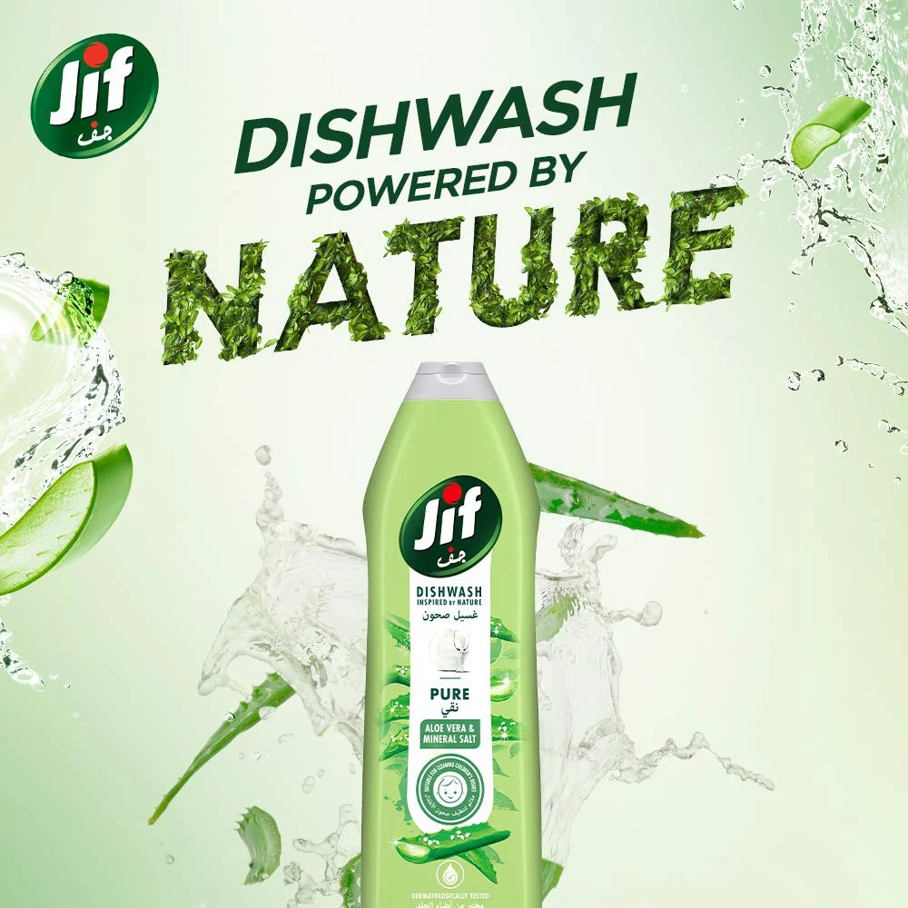 JIF PURE ALOE VERA & MINERAL SALT DISH WASH LIQUID 750 ML Jif Pure Aloe Vera & Mineral Salt Dish Wash Liquid (750 ml) combines effective cleaning with the soothing properties of aloe vera. Here are some key features: Key Features: Effective Grease Removal: Designed to tackle tough grease and food residues effectively. Aloe Vera: Known for its skin-soothing properties, it helps protect your hands during dishwashing. Mineral Salt: Often included to enhance cleaning power and provide additional benefits for your skin. Pleasant Fragrance: Leaves a fresh and clean scent, making dishwashing a more enjoyable task. Easy Rinsing: Typically formulated for quick rinsing, ensuring no residue is left on dishes.