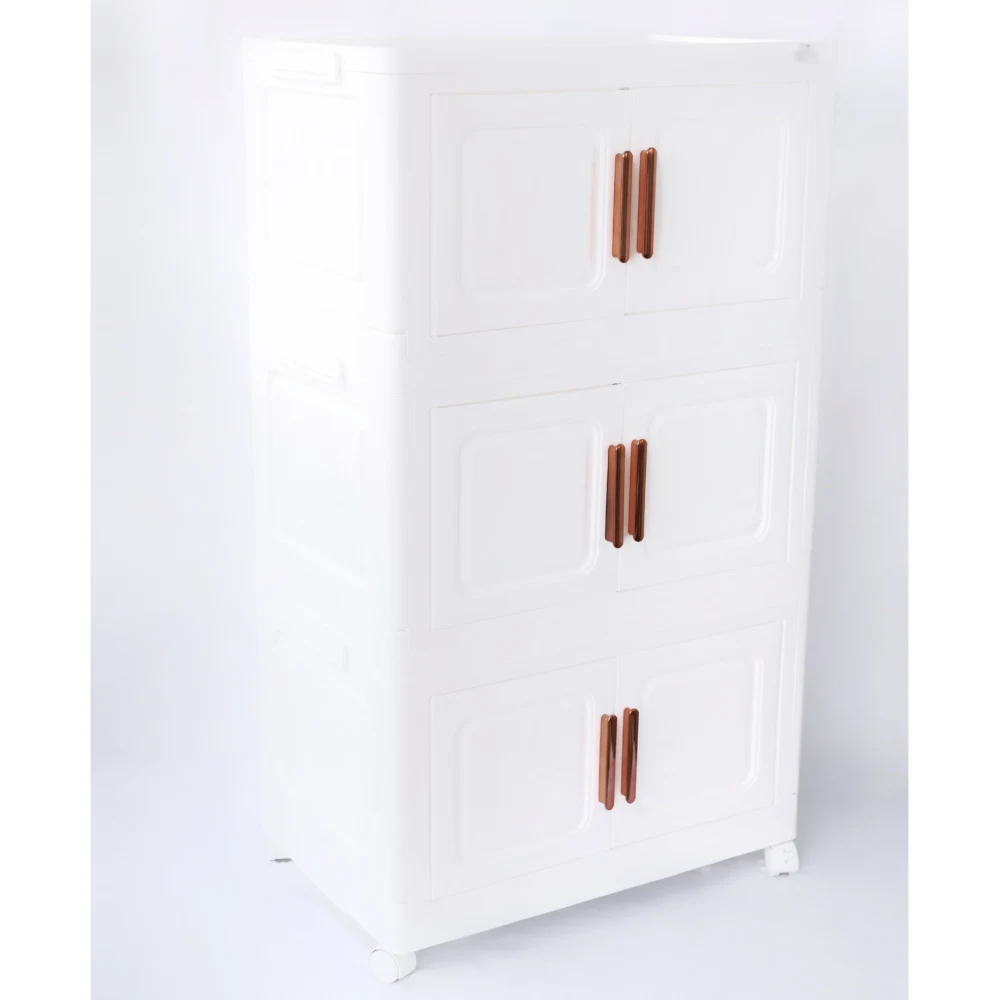DP 3 LAYER STACKABLE STORAGE CABINET WITH DOORS AND WHEELS The DP 3-Layer Stackable Storage Cabinet with Doors and Wheels (60 cm) is a versatile storage solution for organizing your space. Key Features: 3 Layers: Three tiers of storage for books, clothes, or other items. Stackable: Can be stacked to save space and customize storage. Doors: Keeps items out of sight, maintaining a neat appearance. Wheels: Easy to move around for cleaning or reorganization. Size: 60 cm wide, fits in various rooms or closets. Benefits: Space-Saving: Ideal for small spaces. Convenient: Easy to move and access items. Organized: Helps reduce clutter and keep things tidy. Perfect for bedrooms, offices, or living rooms where you need organized and movable storage!