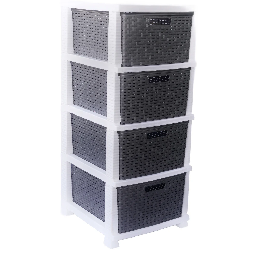 DP 4 LAYER STORAGE ORGANIZING DRAWER The DP 4 Layer Storage Organizing Drawer is a simple, four-drawer unit designed for organizing small items. It is typically made from durable plastic and is lightweight, making it easy to move and place in various spaces like bedrooms, offices, or kitchens. The drawers help keep your items neat and accessible, perfect for storing office supplies, toys, clothes, or household essentials. It's a practical, space-saving solution for maintaining an organized environment.