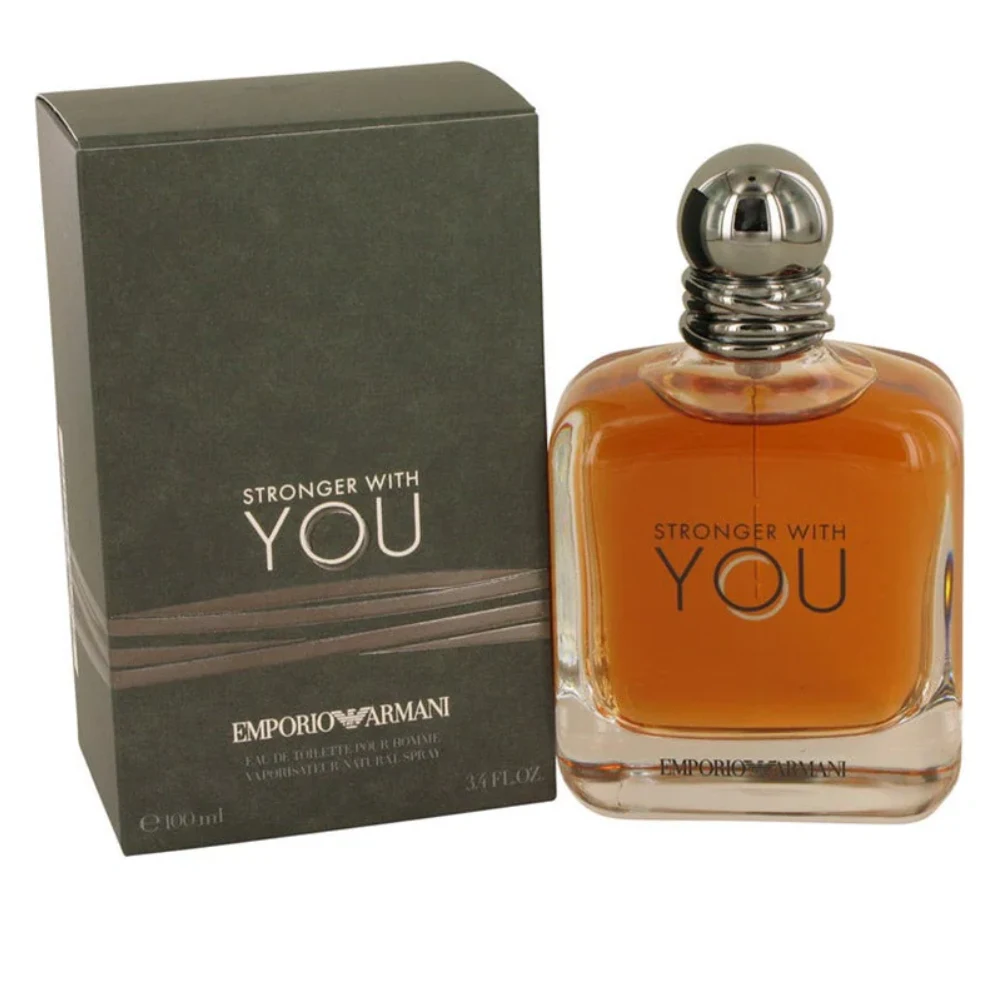 EMPORIO ARMANI STRONGER WITH YOU FOR MEN EAU DE TOILETTE (EDT) POUR HOMME 100 ML Fragrance Type: Eau de Toilette (EDT) – Light yet lasting, perfect for day-to-night wear. Notes: Top: Spicy Pink Pepper, Fresh Mint, and Violet Leaves. Heart: Sweet Vanilla, Cinnamon, and Sage. Base: Warm Amber, Chestnut, and Leather. Bold & Masculine: A warm, sensual fragrance with a unique mix of spicy, woody, and sweet elements. Benefits: Long-Lasting: The EDT formulation offers a scent that lingers without being overpowering. Sophisticated & Confident: Perfect for confident men who want a fragrance that exudes warmth and elegance. Versatile: Suitable for evening events, date nights, or a special occasion. Emporio Armani Stronger With You is a modern, sensual fragrance for men who want to leave a lasting impression with a warm and intriguing scent.