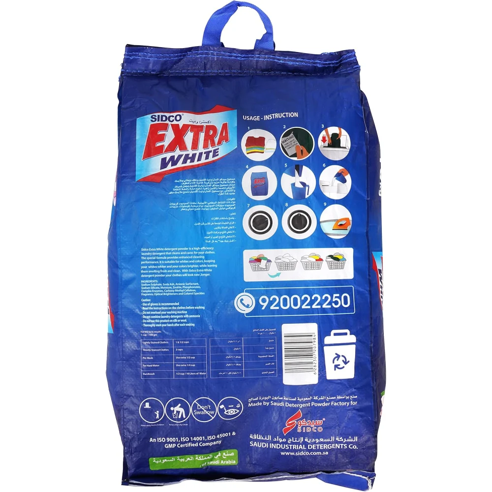 EXTRA WHITE FLOWER DETERGENT POWDER FOR ALL KIND OF CLOTHES 10 KG All-Purpose Cleaning: Designed for use on a variety of fabrics, making it suitable for all types of clothes, from cotton to synthetic materials. Extra Whitening: Formulated to enhance the whiteness of fabrics, helping to keep whites bright and vibrant. Stain Removal: Effectively tackles tough stains, ensuring your laundry comes out clean and fresh. Economical Size: The 10 kg package is ideal for households with high laundry needs, providing a cost-effective solution. Benefits: Versatile Use: Suitable for both machine and hand washing, giving flexibility in how you do laundry. Fresh Scent: Leaves clothes smelling clean and fresh after washing. Easy to Measure: Simple dosage instructions for hassle-free use. Dosage: Follow the guidelines on the packaging for the appropriate amount based on load size and soil level. Washing Instructions: Use according to your washing machine’s instructions or for hand washing as needed.