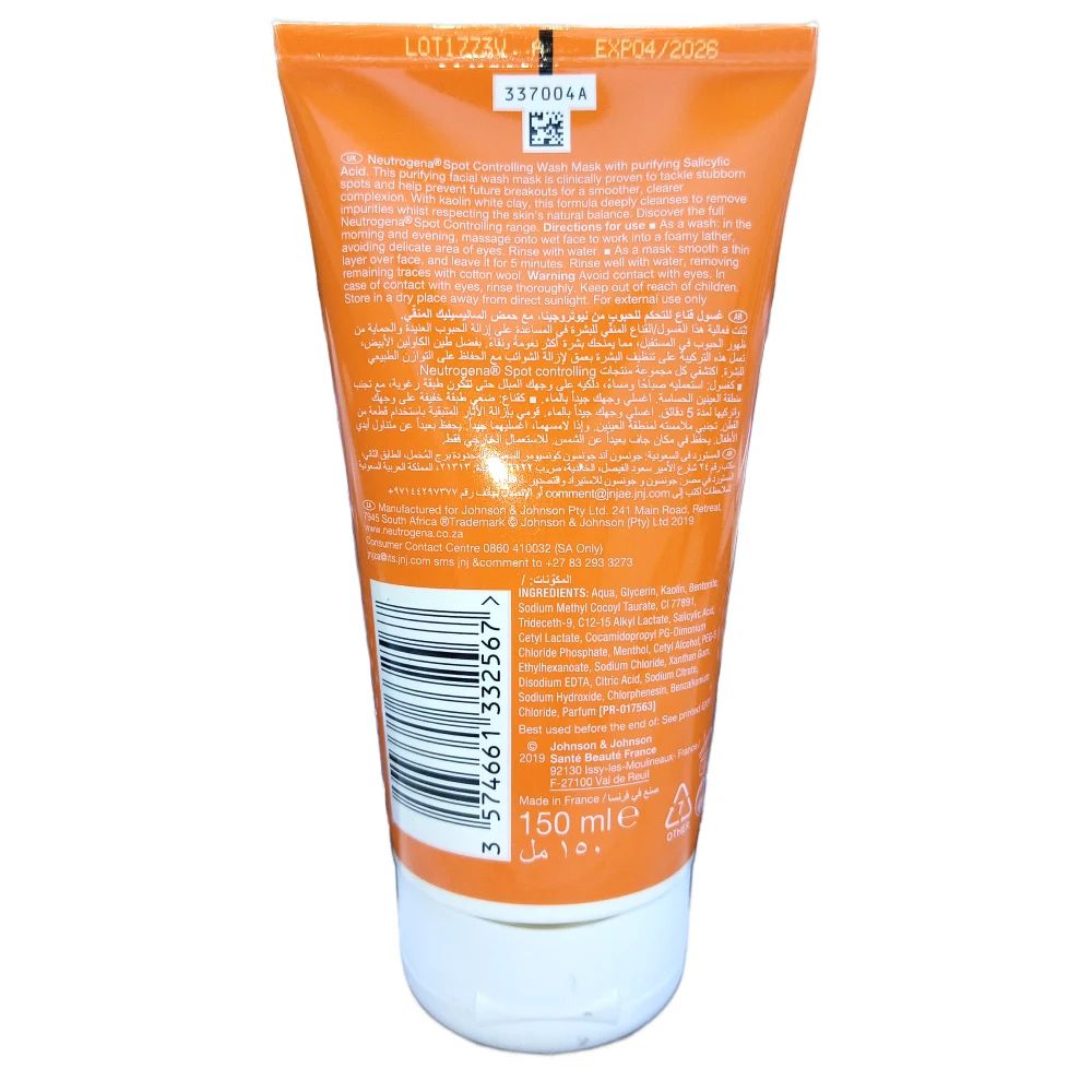 NEUTROGENA DEVELOPED WIYH DERMATOLOGIST SPOT CONTROLLING WASH/ MASK OIL FREE 150 ML Dual Purpose: Can be used as both a daily cleanser and a treatment mask, providing flexibility in your skincare routine. Spot Controlling: Formulated with effective acne-fighting ingredients that help target and reduce breakouts while preventing future ones. Oil-Free Formula: Specifically designed for oily and acne-prone skin, it cleanses without clogging pores or adding excess oil. Usage: As a Wash: Wet your face, apply a small amount, and gently massage it into your skin. Rinse thoroughly with water. As a Mask: Apply a thicker layer to clean, dry skin and leave it on for a few minutes before rinsing off for deeper treatment. Size: The 150 ml packaging is convenient for both home use and travel, making it easy to incorporate into your daily routine. Individuals with oily or acne-prone skin looking for an effective product to control breakouts. Suitable for daily use as part of a comprehensive skincare regimen.