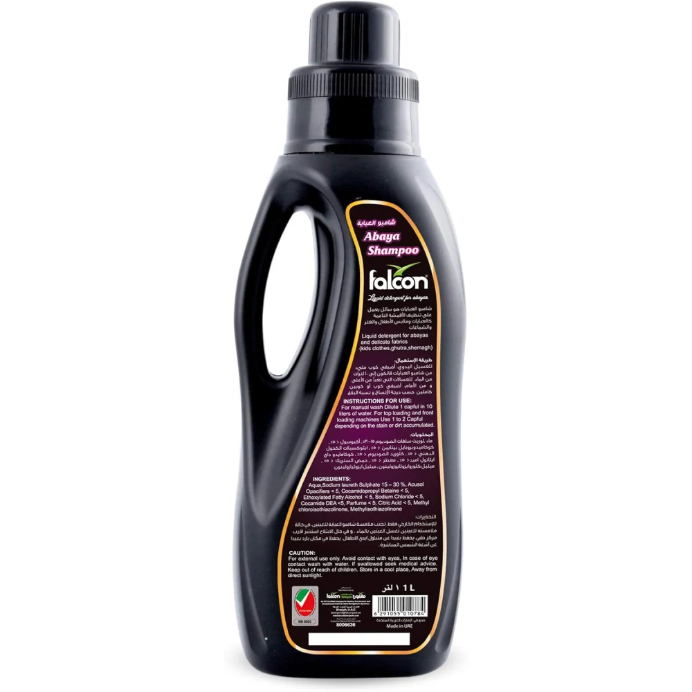 FALCON ABAYA SHAMPOO LIQUID DETERGENT FOR ABAYAS 1 L Gentle Formula: Designed specifically for abayās, ensuring that it cleans effectively without damaging the fabric. Stain Removal: Targets tough stains while preserving the color and texture of the abaya. Fresh Fragrance: Leaves a pleasant scent on the fabric, keeping your garments smelling fresh. Easy Rinsing: Formulated for easy rinsing, preventing any residue that could affect the fabric’s feel. Benefits: Preserves Fabric Quality: Helps maintain the quality and appearance of abayās over time. Suitable for Hand and Machine Wash: Versatile enough for both hand washing and machine washing, making it convenient to use. Effective Cleaning: Provides thorough cleaning, ensuring your garments look their best. Usage Tips: Dosage: Follow the instructions on the label for the appropriate amount to use based on load size. Washing Instructions: Use in accordance with the washing instructions for your abayas for optimal results.