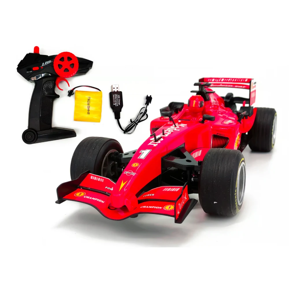 JIAYUE RACING 2.4 GHz AUTO MODEL 1:12 SCALE REMOTE CONTROL CAR FA89B Speed: Can reach up to 14 km/h. All Functions: Moves forward, backward, left, and right with front & back suspension. High Grip Tires: Ultrasonic rubber tires for better traction. Battery: Includes a 4.8V rechargeable battery for the car (charge for 1 hour before use). Remote Control: Requires 2 x AA batteries (not included). Material: Made of durable plastic. Size: 19 cm wide x 14 cm high. Age: Suitable for kids 3+ years. In the Box: 1 car, 4.8V battery, and 1 remote control. SCALE-1:12 A fun, speedy RC car for kids with easy control and great performance!