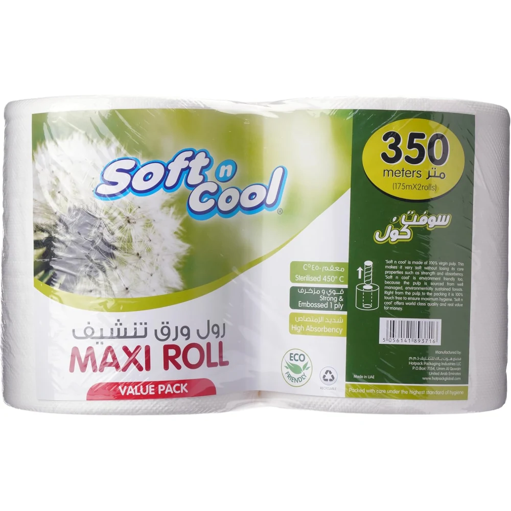 KHALEEJ PACK DAISY SUPER ABSORBENT MAXI ROLL EMBOSSED 2 PLY TISSUES ECONOMY PACK Description: Daisy Super Absorbent Maxi Roll 2-Ply Tissues come in an economy pack . These tissues are embossed for added softness and strength, providing excellent absorbency for everyday use. Perfect for home, office, or commercial settings, they offer great value and are ideal for wiping, cleaning, or general tissue needs.