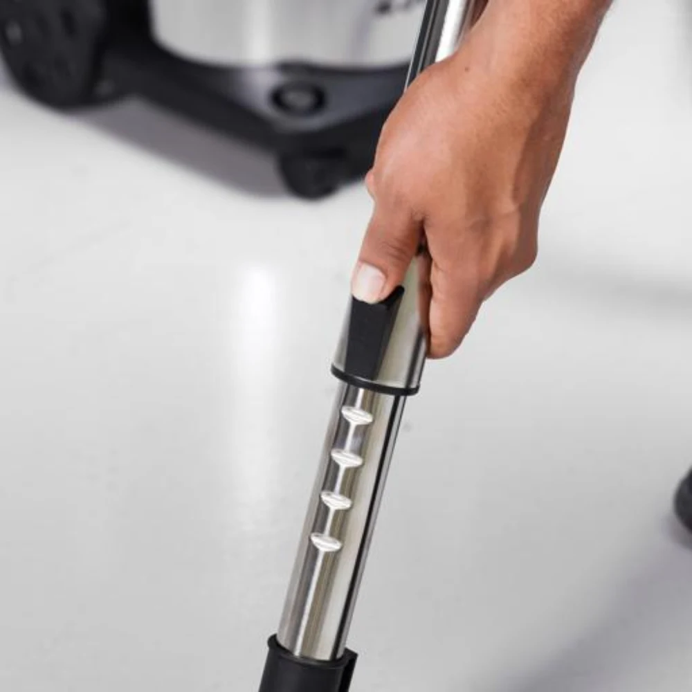 KRYPTON WET & DRY STAINLESS STEEL VACUUM CLEANER 23 LITRE 2300 W KNVC6382 The Krypton KNVC6382 Wet & Dry Stainless Steel Vacuum Cleaner is designed for versatile cleaning tasks. Here are its key features: Powerful Motor: With a 2300W motor, it provides strong suction for effective cleaning of both wet and dry messes. 23-Liter Capacity: The stainless steel drum holds up to 23 liters, allowing for extensive cleaning without frequent emptying. Wet and Dry Functionality: Suitable for cleaning spills and dry debris, making it ideal for various environments, from homes to workshops. Durable Construction: The stainless steel body is resistant to rust and damage, ensuring long-lasting use. Multiple Attachments: Comes with a variety of tools and nozzles for different cleaning tasks, enhancing its versatility. User-Friendly Design: Features wheels for easy mobility, a long power cord for extended reach, and ergonomic handles for comfortable carrying. AC 220-240V 50/60Hz 2300W