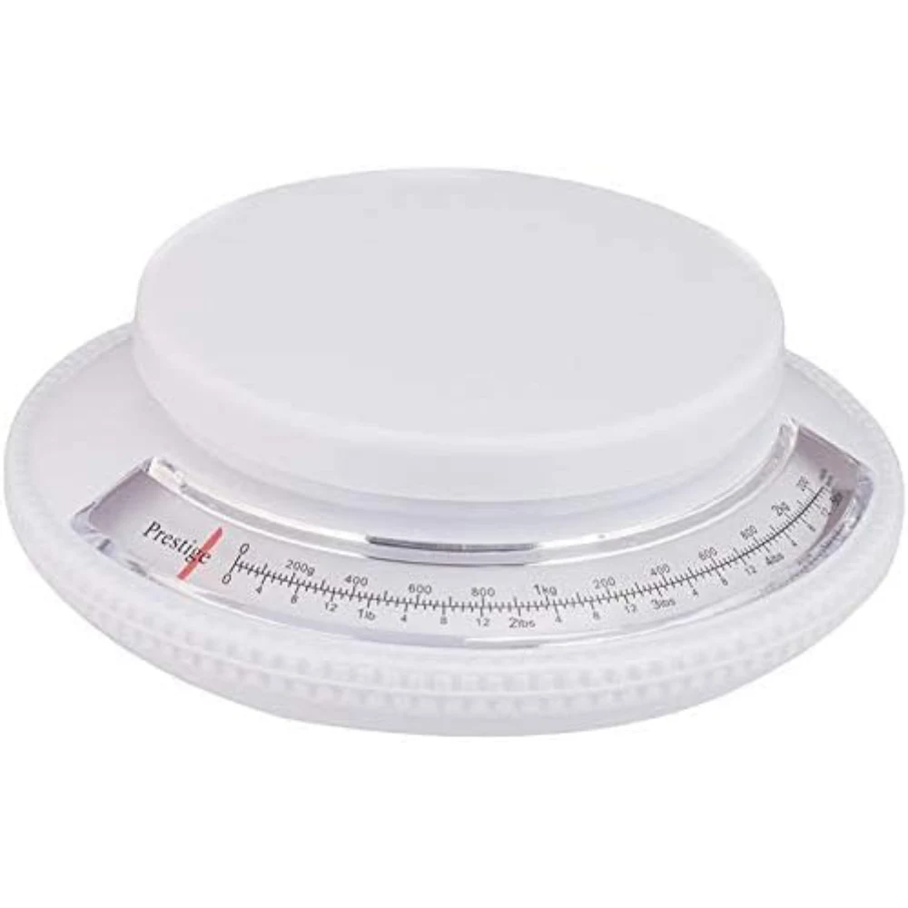 PRESTIGE KITCHEN SCALE 2.2 KG PR8016 Mechanical Kitchen Scales Effortlessly manage all your weight and volume measurement needs with our Mechanical Kitchen Scales. Perfect for both dry ingredients and liquids, this innovative scale comes with a large, transparent measuring cup that makes cooking a breeze. Key Features: Capacity: Weigh up to 2.2 kg (5 lbs), accommodating various ingredient sizes. Graduation: Precise measurements with a graduation of 20 g (1 oz) for accuracy in your recipes. Versatile Bowl: The included bowl is suitable for measuring both solids and liquids, ensuring versatility in the kitchen. Easy-to-Read Dial: The clear dial makes it simple to read measurements at a glance. Compact Design: Its sleek and compact design allows for easy storage and portability. Fall in love with cooking all over again with these reliable and stylish Mechanical Kitchen Scales—your essential kitchen companion!