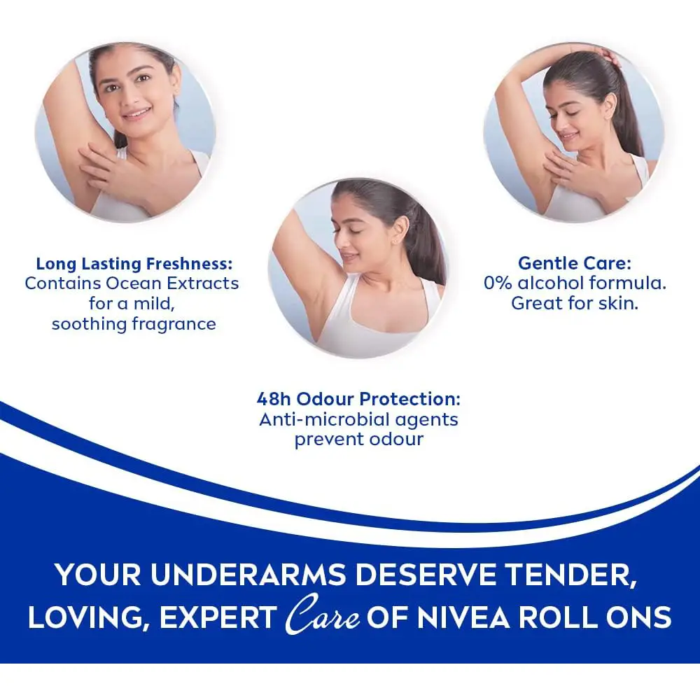 NIVEA ANTI-PERSPIRANT ANTI-TRANSPIRANT FRESH NATURAL 48 H PROTECTION 50 ML Ocean Extracts & Floral Fragrance: Infused with ocean extracts and a fresh floral scent to keep you feeling fresh all day. All-Day Odour Protection: Provides long-lasting freshness and odour control. Dermatologically Approved: Tested for skin compatibility for safe use. Alcohol & Colorant-Free: Gentle on the skin, without alcohol or colorants. International Product: Sold from abroad with potential differences in fit, instructions, and language compared to local products.