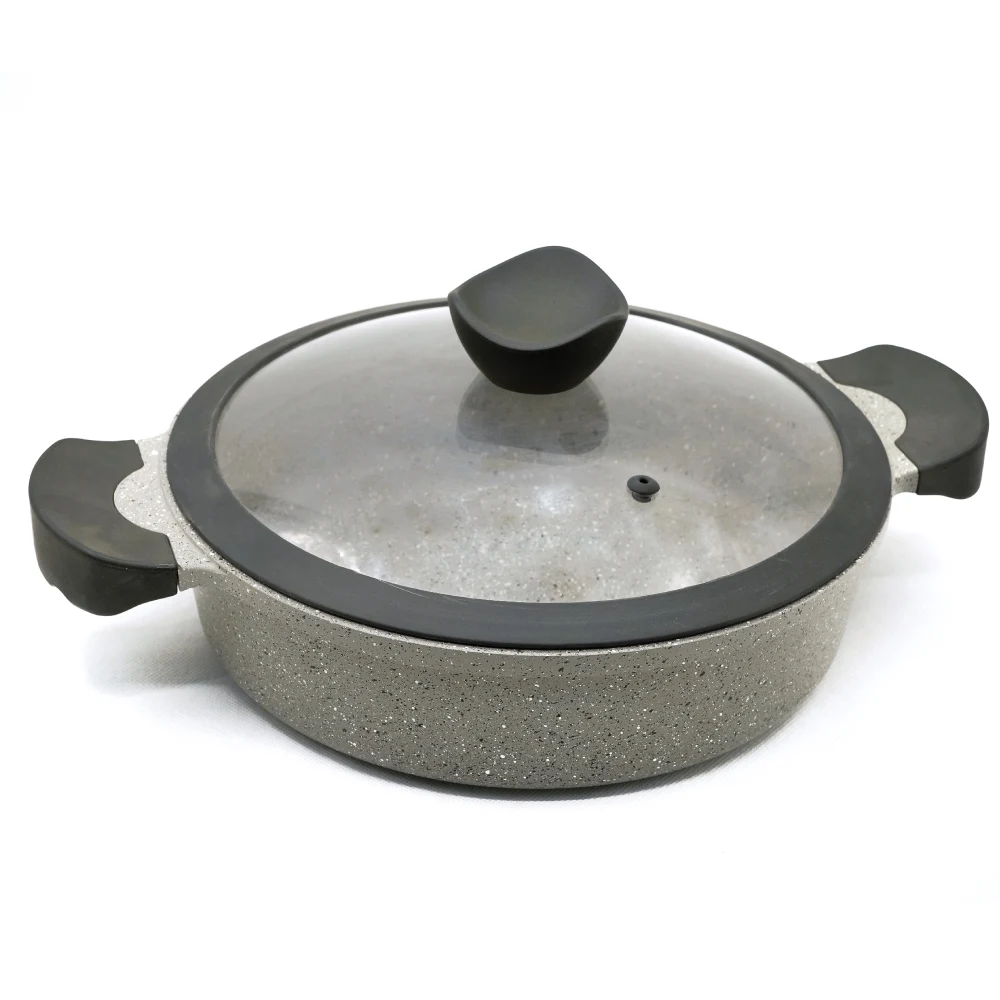LIFE SMILE SHALLOW COOKING POT 26 CM The Life Smile Shallow Cooking Pot (26 cm) is a versatile kitchen tool designed for various cooking needs. Here are its key features and benefits: Key Features: Shallow Design: The shallow profile allows for quicker cooking and better evaporation, making it ideal for frying, sautéing, and simmering dishes. Size: At 26 cm, it’s perfect for preparing meals for small to medium-sized families, such as stir-fries, curries, and sauces. Durable Construction: Typically made from high-quality materials, ensuring longevity and resistance to everyday wear and tear. Non-Stick Coating: Many models come with a non-stick surface, allowing for easy food release and facilitating healthier cooking with less oil. Even Heat Distribution: Designed for uniform heating, helping to prevent hot spots and ensuring consistent cooking results. Comfortable Handle: Equipped with an ergonomic handle that provides a secure grip for safe and easy handling during cooking.