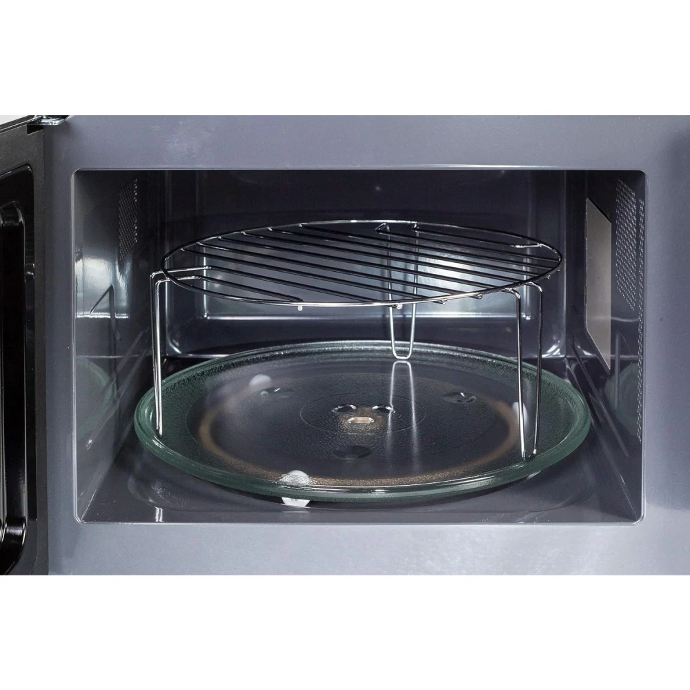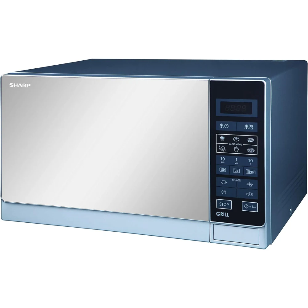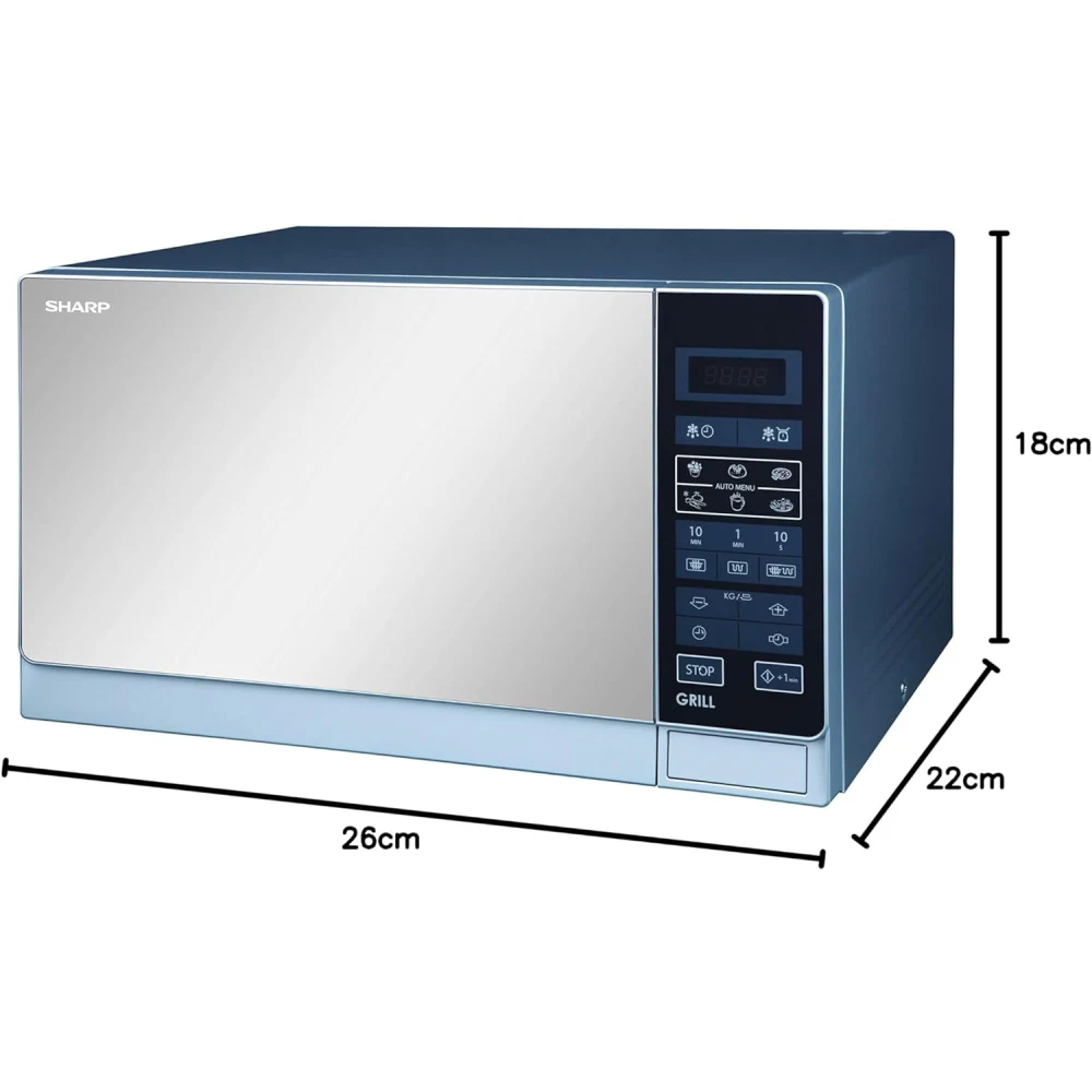 SHARP 25 L MICROWAVE OVEN WITH GRILL 900 W AND GRILL 1000 W R - 75MT(S) 6 Auto Cooking Menu’s • 11 Power Levels • 315mm Diameter Turntable • Mirror Finish Door • Silver Color with Grey Painted Cavity • Child Lock • Timer Function Capacity - 25L Power Output: Microwave 900W Grill 1000W Functionality: Combines microwave cooking with grilling, allowing for a variety of cooking methods. Control Panel: Usually includes easy-to-use electronic controls and a digital display. Uses: Cooking: Ideal for reheating, defrosting, and cooking a variety of foods, with the added option of grilling. Grilling: Perfect for achieving a crispy finish on meats and vegetables. Benefits: Versatile Cooking: Offers multiple cooking options for various dishes. Compact Design: Fits well in kitchens with limited space. Efficiency: Fast cooking and reheating times.