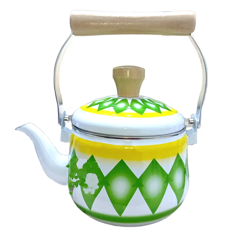 SIMBAMKUBWA ORIGINAL ENAMEL KETTLE WITH LID 1.3 L Capacity: 1.3 liters, suitable for small to medium-sized servings of tea, coffee, or hot water. Material: The enamel coating is applied over a steel base, offering strength and resistance to high temperatures while being rust-resistant and easy to clean. Lid: The kettle comes with a matching lid to help heat water faster and retain warmth. Design: Enamel kettles often feature a retro or vintage design, providing both functionality and aesthetic appeal. It may come in various colors and patterns. Durability: Enamel is a durable material, making this kettle a long-lasting choice for daily use.