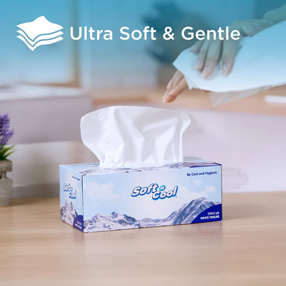 SOFT N COOL WHITE TISSUE 6 BOXES Soft N Cool White Tissue (6 boxes) is a reliable choice for everyday use. Here are some highlights: Features Soft Texture: Designed to be gentle on the skin, making them comfortable for wiping the face or hands. Absorbent: Effectively absorbs moisture, ideal for various cleaning tasks. Multiple Uses: Suitable for personal care, makeup application, or household cleaning. Uses Daily Hygiene: Perfect for blowing your nose, wiping hands, or cleaning up spills. Makeup Removal: Can be used to gently remove makeup or touch up during the day. Travel Companion: Convenient to carry for use at home, in the car, or while traveling. Storage Keep in a dry place to ensure they remain fresh and effective.