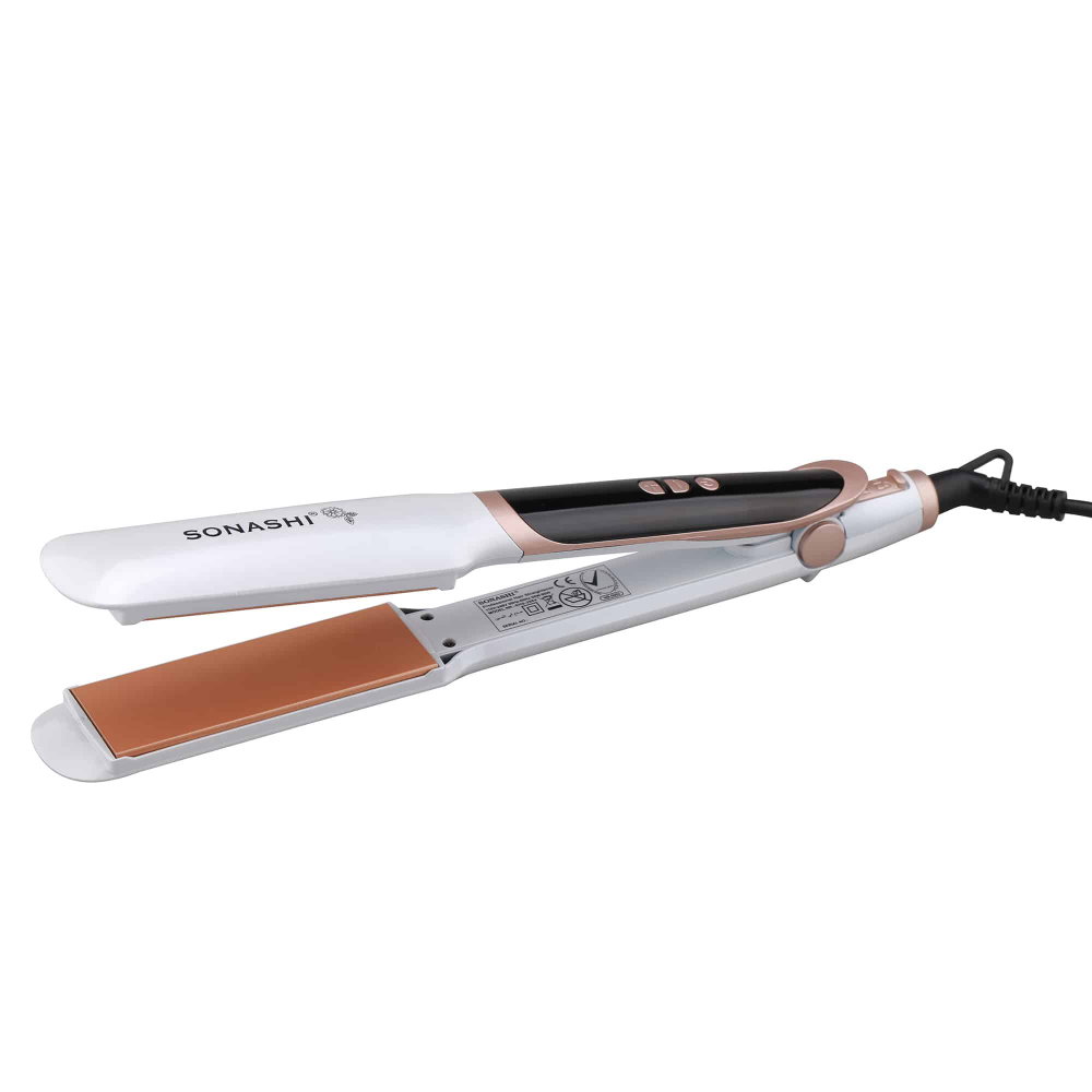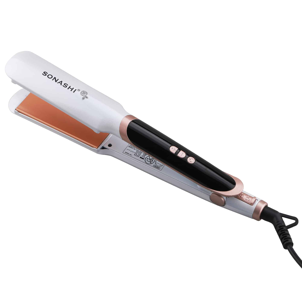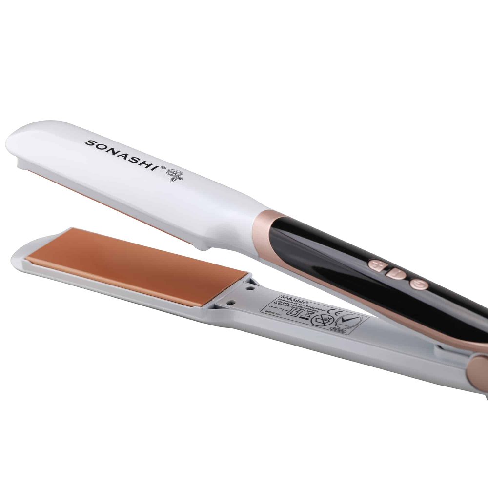 SONASHI HAIR STRAIGHTNER SHS2084 Professional Hair Straightener The Sonashi hair styling machine is your go-to professional hair straightener, trusted for achieving salon-quality styles right at home. Construction & Design This sleek and compact straightener features a 360-degree swivel cord for easy maneuverability. The ceramic plates minimize hair damage and help retain moisture, ensuring healthier styling. Temperature Control Equipped with a PTC heating system, this hair straightener includes a temperature control feature that prevents overheating. The LED display allows you to easily adjust the temperature to suit your hair type. Safety Features For added safety, the straightener automatically shuts off after one hour of inactivity, protecting against overheating and enhancing longevity. The lock function facilitates easy storage and protects the plates from wear when not in use.