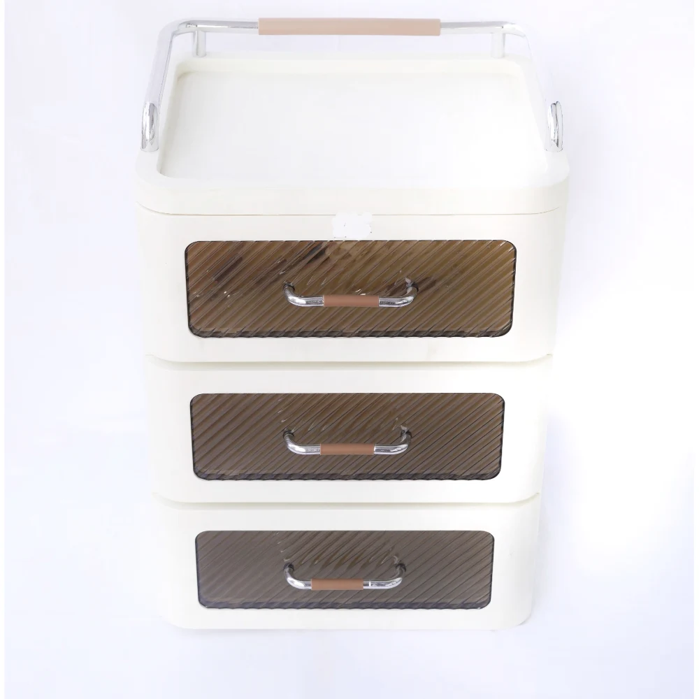 DP 3 LAYER HOUSEHOLD STORAGE CABINET DRAWER The DP 3 Layer Household Storage Cabinet Drawer is a compact, three-drawer organizer designed to help you store household items in an orderly way. Made from durable plastic, it is lightweight and easy to move. Perfect for small spaces like bedrooms, bathrooms, or kitchens, this storage unit helps keep items like toiletries, office supplies, or clothes neatly organized and easily accessible. Its simple design fits well with most home decor styles.
