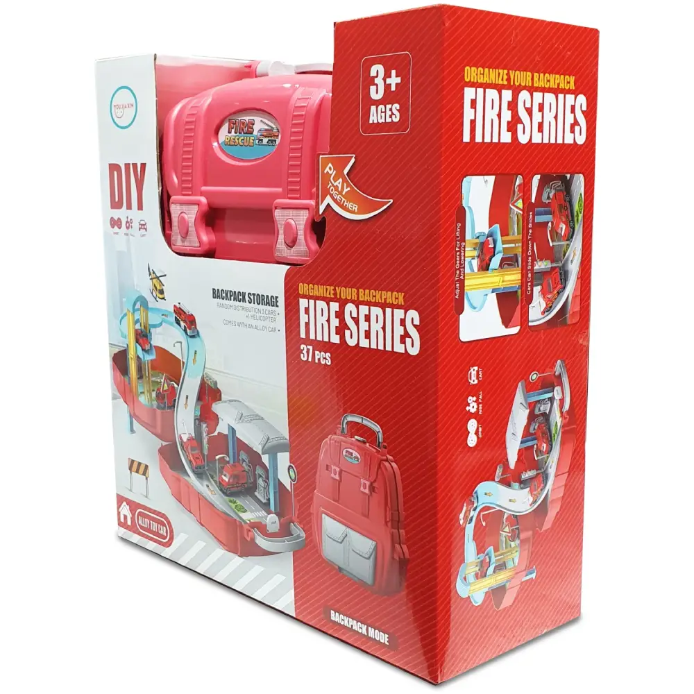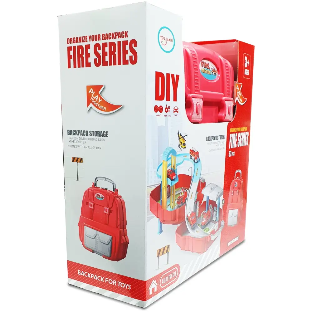 YOUJIAXIN FIRE SERIES BACKPACK STORAGE MODE ALLOY TOY CAR 37 PCS (3 + AGES) The Youjiaxin Fire Series Backpack Storage Mode Alloy Toy Car (37 PCS) is a toy set designed for children aged 3 and up. Here’s a simple breakdown of its features: Fire Series Theme: The toy set features a fire truck or related vehicles, based on the fire rescue theme. Backpack Storage Mode: The set comes with a convenient backpack that can store all the pieces, making it easy to carry and organize. Alloy Toy Car: The cars in the set are made from durable alloy, ensuring long-lasting play. 37 Pieces: The set includes 37 different parts or vehicles, providing variety for imaginative play. Recommended Age: Suitable for children aged 3 and above. This toy is designed to encourage creative play while also offering practical storage and portability for young children.